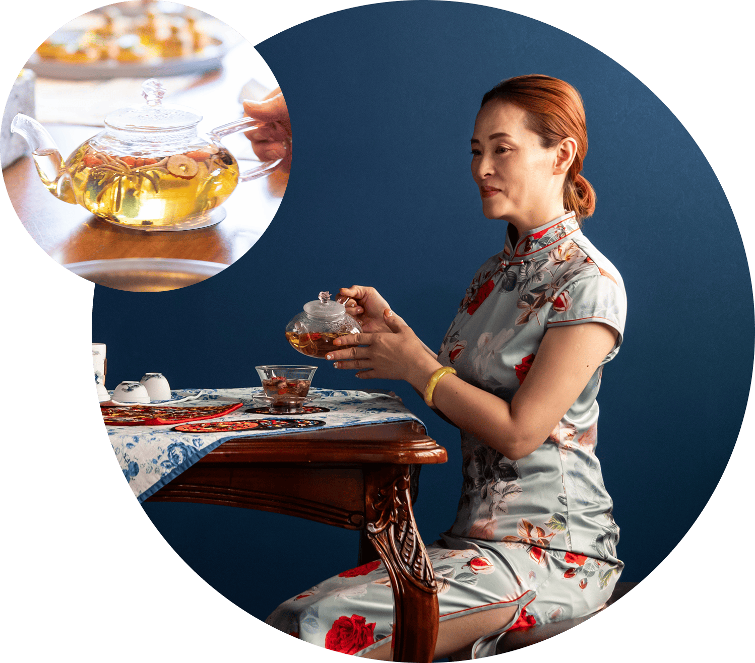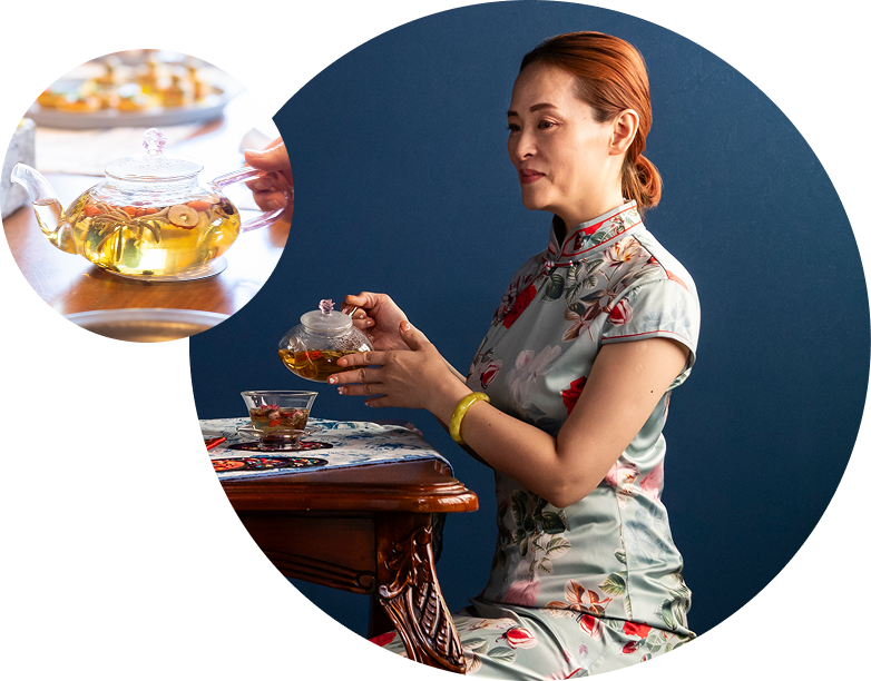 名医として活躍した祖父の130年続く秘伝の薬膳をきっかけに、薬膳を広める活動を開始。中国遼寧省中医学院日本校で学びを深め、これまで3,000名以上に薬膳カウンセリングや花茶調合を実施。累計1万件を超える実績を持つ薬膳処方の専門家となる。
